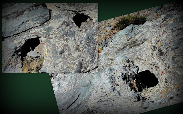 En las piedras vemos los cucones que se notan de haber sido picados para almacenar el agua de la lluvia. Es curioso como el agua al escurrirse por uno de los laterales del hueco, se ha ido rajando y abriendo con la fuerza que produce el hielo. El cincel de la erosión culmina el trabajo que el hombre empezó.